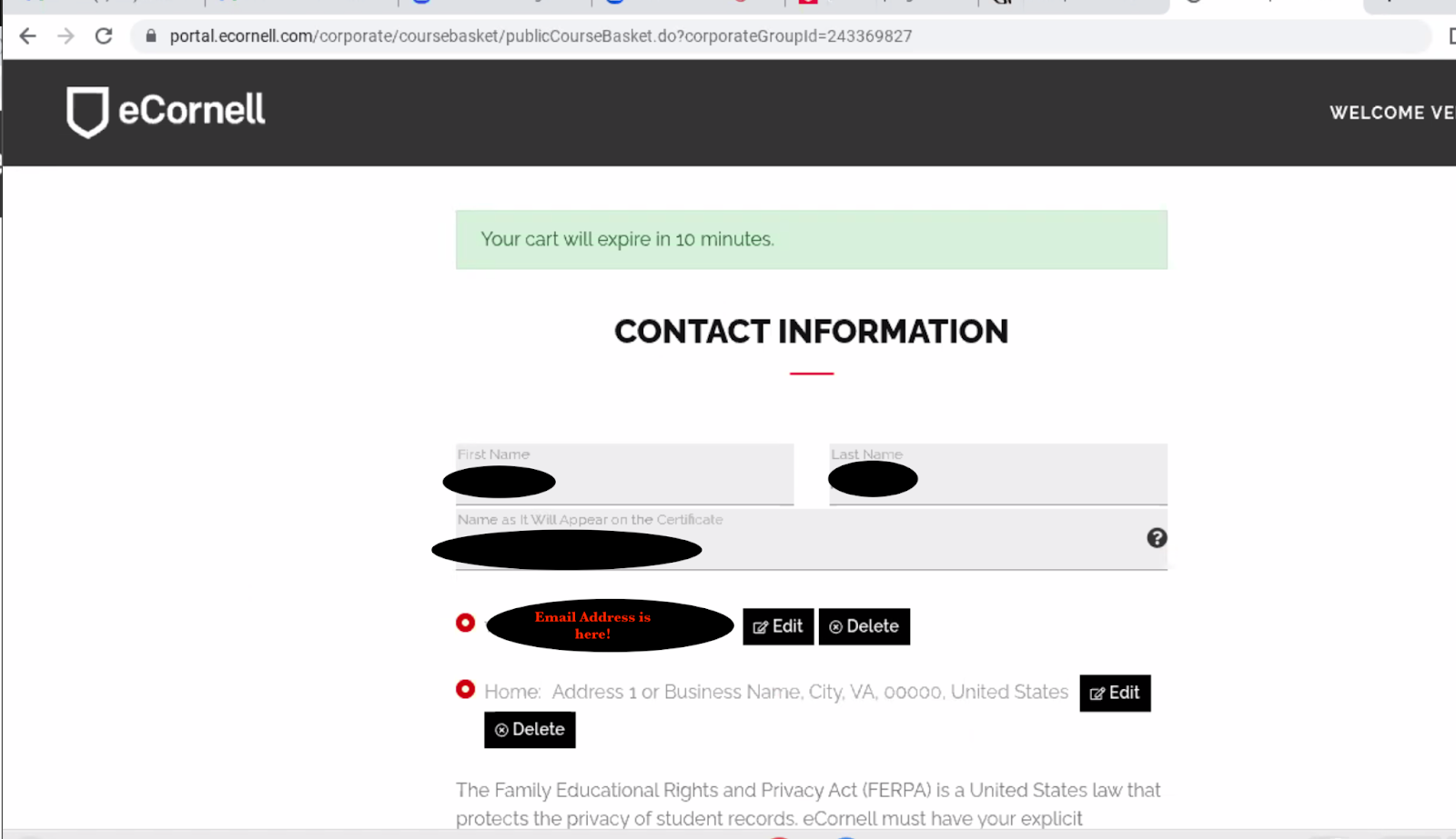 - Once you have successfully enrolled, you will receive an enrollment confirmation email from eCornell. To ensure you do not miss any communications, we recommend adding the following addresses to your contacts: